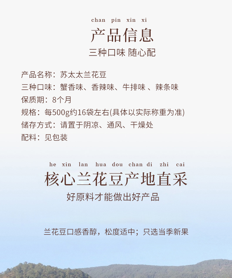 登录后方可查看联系方式本网页所展示的有关【苏太太牛肉蟹黄味香辣蚕豆零食小包装兰花豆散装炒货现货批 发500g_休闲零食_苏州市苏太太食品有限公司】的信息/图片/参数等由黑龙江省中祥电子商务有限公司的会员【苏州市苏太太食品有限公司】提供,由黑龙江省中祥电子商务有限公司会员【苏州市苏太太食品有限公司】自行对信息/图片/参数等的真实性、准确性和合法性负责,本平台(本网站)仅提供展示服务,请谨慎交易,因交易而产生的法律关系及法律纠纷由您自行协商解决,本平台(本网站)对此不承担任何责任。您在本网页可以浏览【苏太太牛肉蟹黄味香辣蚕豆零食小包装兰花豆散装炒货现货批 发500g_休闲零食_苏州市苏太太食品有限公司】有关的信息/图片/价格等及提供【苏太太牛肉蟹黄味香辣蚕豆零食小包装兰花豆散装炒货现货批 发500g_休闲零食_苏州市苏太太食品有限公司】的商家公司简介、联系方式等信息。